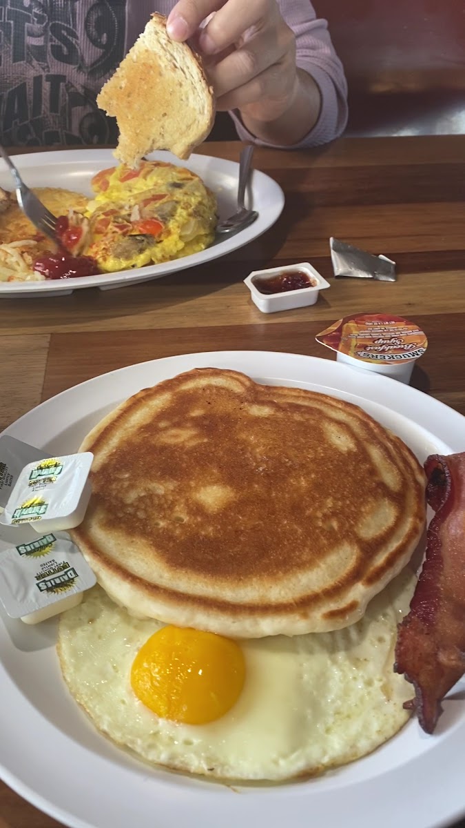 If you’re in the mood for an omelet, you’ll find delightful choices like the classic Bacon and Cheese omelet ($7.95) or the veggie-packed Denver omelet featuring ham, tomatoes, and peppers for just $8.95. Complement your meal with tempting sides—including crispy bacon, sausage links, and fresh avocado—to build your perfect brunch plate.